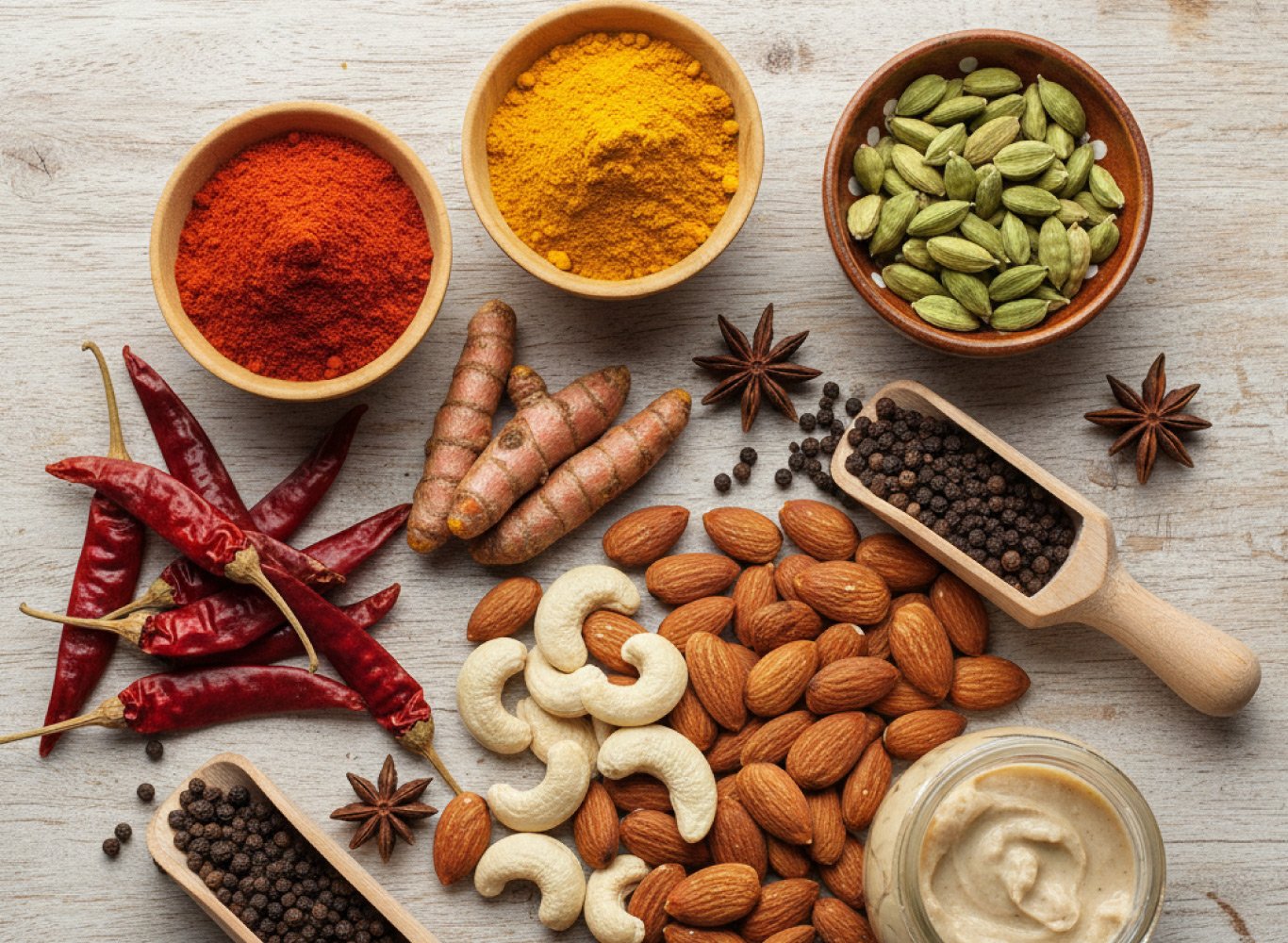 Explore our extensive collection of aromatic spices, premium nuts, and essential cooking pastes. We source the finest authentic ingredients to bring the true taste of India to your home, ensuring every dish you create is packed with rich, genuine flavor.